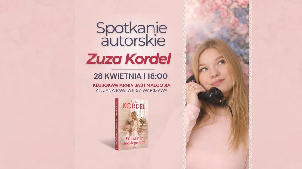 Skontaktuj się z namiKlubokawiarnia Jaś i Małgosia w Warszawie zaprasza na wyjątkowe spotkanie autorskie z Zuzą Kordel, które odbędzie się z okazji premiery jej najnowszej powieści „W krainie słodkiego jutra”. Wydarzenie zaplanowano na 28 kwietnia 2026 roku o godzinie 18:00 przy alei Jana Pawła II 57.