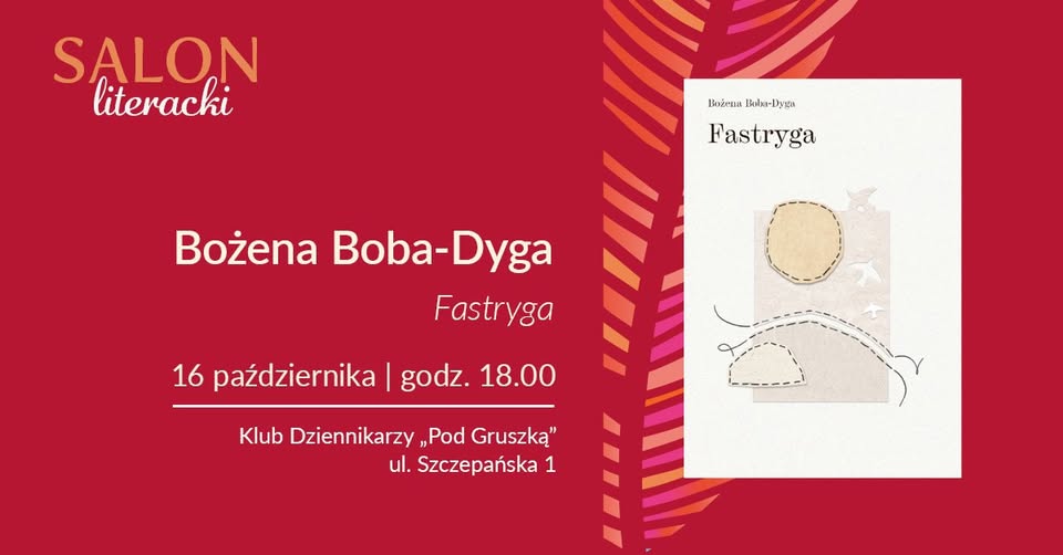Wieczór będzie poświęcony premierze najnowszego tomiku poezji „Fastryga”, w którym autorka z charakterystyczną dla siebie odwagą i wrażliwością podejmuje trudne tematy współczesności: konflikty zbrojne, technologiczny nadmiar i kryzys wartości. Jak pisze Krzysztof Lisowski: „Poezja Bożeny Boby-Dygi jest jak iskra podpalająca lont pod ładunkami zdziwienia nieoczywistością życia”.