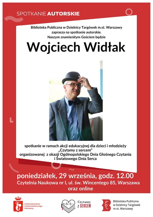 Skontaktuj się z namiW ramach ogólnopolskiej akcji „Czytamy z Sercem” serdecznie zapraszamy na wyjątkowe spotkanie z pisarzem Wojciechem Widłakiem – autorem pełnej ciepła i wzruszeń książki „Dwa serca anioła”.