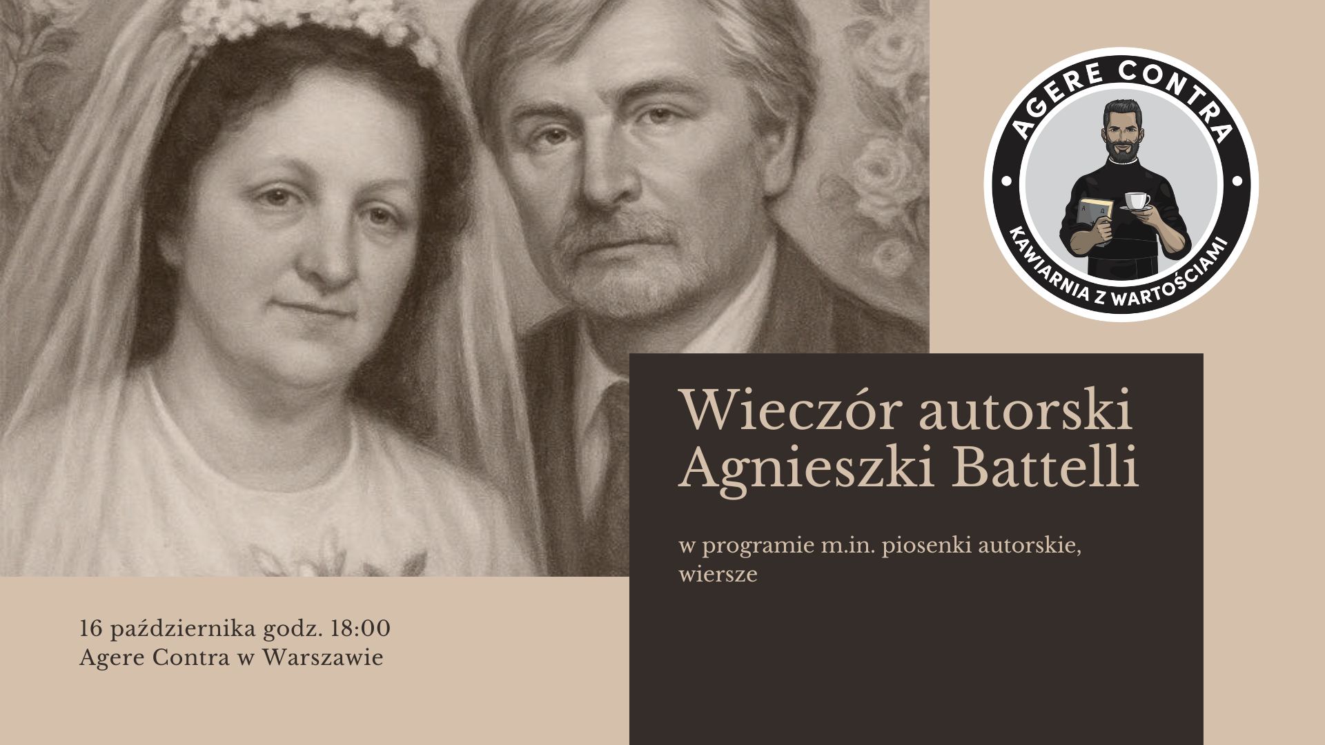 Skontaktuj się z namiSerdecznie zapraszamy na wyjątkowy wieczór autorski Agnieszki Battelli – artystki o niezwykle bogatym i wszechstronnym dorobku. Absolwentka wokalno-aktorskiego wydziału Akademii Muzycznej w Łodzi, przez wiele lat pedagog śpiewu, a dziś – wciąż poszukująca nowych wyzwań wokalistka, kompozytorka, pisarka, poetka i dramatopisarka.